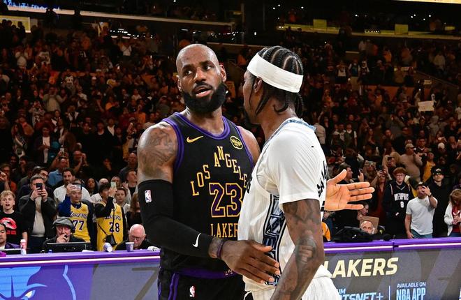 灰熊在第三節結束時將比分追到96平,還在第四節一開始靠莫蘭特的上籃反超湖人。詹姆斯這時候站了出來,他制造前隊友波普犯規,兩罰全中。末節還剩9分43秒,詹姆斯突破拋投得分,湖人下一次進攻依靠詹姆斯的突破上籃繼續得分,隨后斯馬特投進三分球,湖人105比101領先4分。末節前3分半鐘時間,在詹姆斯獨自帶隊下,湖人掌握了主動權。