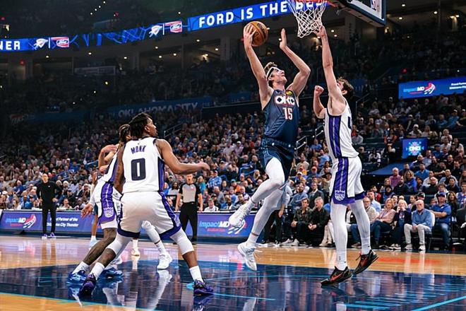 本場比賽中,雷霆的替補內線球員布蘭登-卡爾森(Branden Carlson)的表現(xiàn)給大家留下了深刻的印象。卡爾森全場出場21分37秒,投籃9中6,三分線外2中1,罰球2中2,得到了15分11籃板2助攻2搶斷的兩雙數(shù)據(jù),其中還包括了3個前場籃板,還有1次失誤和3次犯規(guī),正負值為+13。值得一提的是,15分是卡爾森本賽季的單場最高得分,11籃板更是他職業(yè)生涯的單場籃板數(shù)新高,本場比賽也是卡爾森本賽季至今的單場最佳之戰(zhàn)。