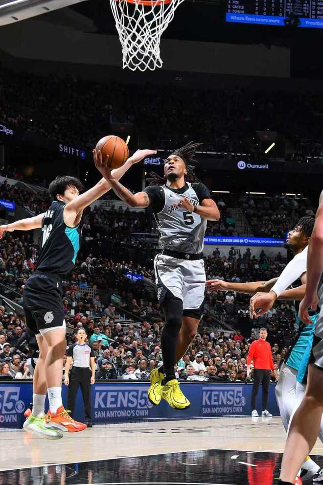 開拓者:楊瀚森10分39秒1中0與罰球2中2,得到2分2籃板1助攻2蓋帽??肆指?記三分24分12籃板4助攻創生涯單場得分新高紀錄,阿夫迪亞29分11籃板10助攻,卡馬拉5記三分20分8籃板,樂福16分。馬刺:尚帕尼20分10籃板4助攻,巴恩斯14分,科內特23分8籃板5蓋帽,??怂?9分6籃板4助攻搶斷,卡斯爾16分5籃板9助攻。