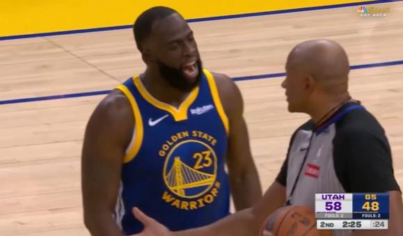 在比賽進行到第二節末端時,爵士前鋒馬爾卡寧突入籃下雙手暴扣,隨后勇士內線追夢格林對陣底線的女裁判喋喋不休,連續吃到兩次技術犯規被驅逐離場。