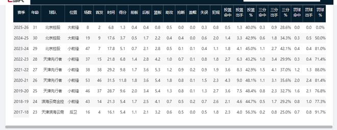 作為C類合同球員,吳冠希本賽季9次出場后,場均可獲15.1分鐘出場時間,但場均僅能為球隊貢獻3.7分3籃板,罰球命中率更是只有27.3%,該數據或暴露他存在基本功不扎實,訓練不刻苦等問題。
