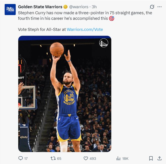 這場比賽庫里又迎來多項里程碑:1.庫里連續75場比賽命中三分,生涯第四次做到;