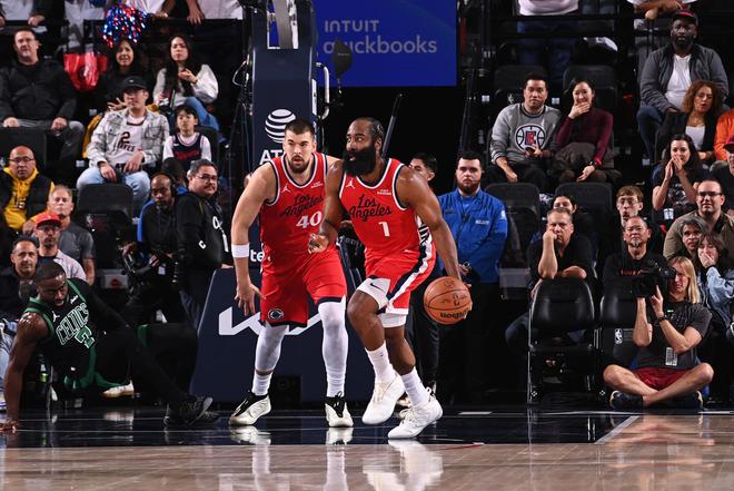 大洛搭檔小卡、哈登出現在首發陣容中,讓快船隊在進攻端空間完全被拉開,給了小卡、哈登展現一對一單打優勢的舞臺,期間小卡場均40.2分超神。