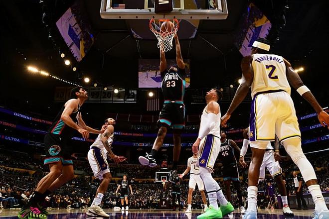 本場比賽中,灰熊的先發側翼新秀塞德里克-考沃德(Cedric Coward)的表現還是相當不錯的,可惜受到傷病的影響,他也是不得不提前退出了比賽。考沃德全場出場12分33秒,投籃9中6,三分線外3中2,罰球2中2,得到了16分8籃板1助攻1搶斷的數據,還有1次失誤和1次犯規,正負值為+13。考沃德在進攻端保持了穩定的進攻效率,而且進攻手段豐富,得分能力得到了充分地發揮,而且他在防守端的表現同樣是可圈可點的,他也是展現出了很強的個人防守能力,他在籃板保護方面的作用同樣出色。可惜考沃德早早就因為腳踝扭傷而不得不提前離場,這也導致了球隊在下半場比賽中在競爭力方面的下降。如果考沃德不受傷,考慮到他在本場比賽中的狀態以及他在場上時球隊的局面,湖人想要取得勝利也未必是一件容易的事情。