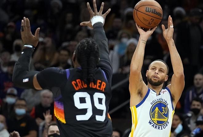 2022年庫里因傷缺席了圣誕大戰,2021年圣誕大戰勇士與太陽上演了強強對話,庫里全場27次出手打進10球,三分16中5,罰球9中8,得到33分4籃板6助攻3搶斷1失誤。雖然手感一般,但正負值高達+24,幫助球隊拿下了勝利,并最終拿下了21-22賽季的總冠軍。