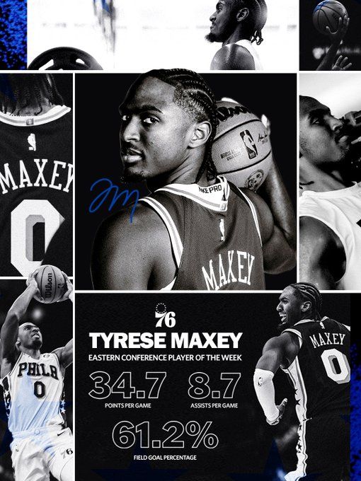 上周,馬克西率領76人獲得3連勝,場均入賬34.7分、6.7籃板、8.7次助攻,投籃命中率高達61.2%。