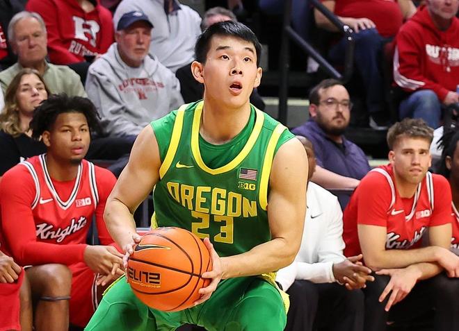 上半場還剩14分44秒,林葳在左側底角接到辛普金斯的傳球穩穩命中三分球,幫助俄勒岡大學13比10領先。