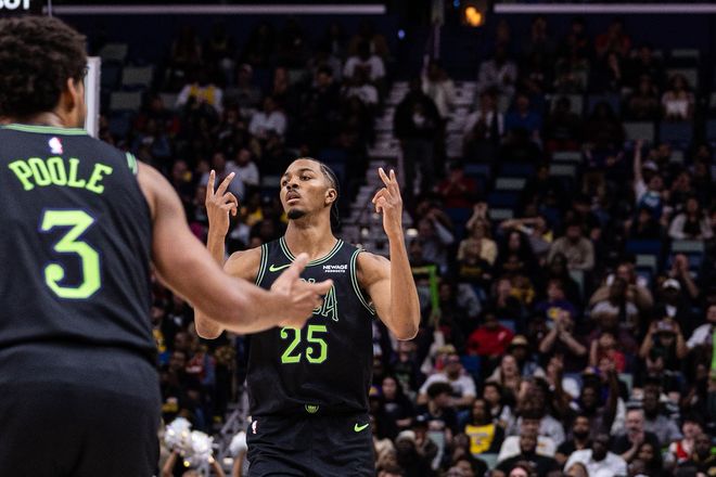 值得一提的是,這場賽后,詹姆斯職業生涯和蔡恩的交手次數來到了10次,戰績9勝1負。前9次對決,詹姆斯場均可以得到29分8籃板10助攻。蔡恩初入聯盟的時候可是被稱作詹姆斯后最強狀元的,可他現在的表現,還不如41歲的詹姆斯。今天蔡恩13投7中,只有15分5助攻4籃板。此外,鵜鶘隊今天還迎來了一個核心輪換的復出,他就是赫伯特·瓊斯。和湖人隊的這場比賽前,瓊斯已經缺席了7場比賽。有趣的是,湖人隊的引援目標之一,就是赫伯特·瓊斯。所以瓊斯挑湖人復出,是想讓湖人提前驗貨嗎?結果我們都知道了,驗貨可能失敗了。因為瓊斯打了35分鐘,9投1中只得到3分……