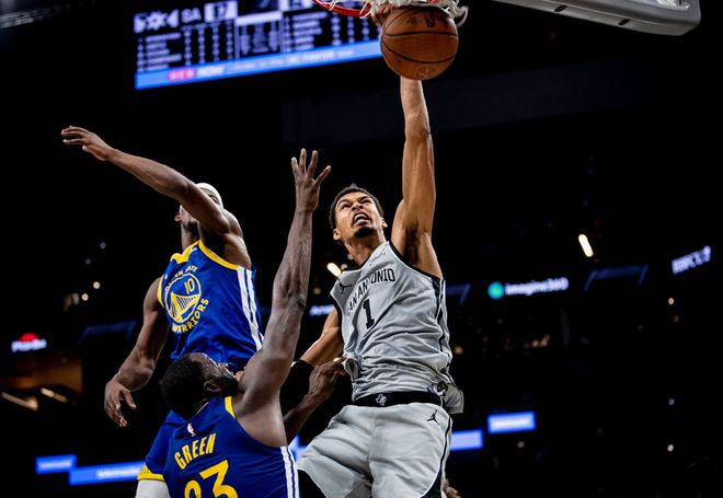 從兩個小細節說起。3周前馬刺第一次打雷霆時,文班亞馬休戰整一個月,專挑打雷霆復出,還只是替補。結果主帥米奇約翰遜就嘗到了田忌賽馬的甜頭,聯盟任何球隊,銜接段沒人能對得上文班亞馬,所以從第一場打雷霆起,文班亞馬替補的比賽,馬刺常規賽6連勝,NBA杯賽決賽輸給尼克斯不計入其中。等到打爵士,文班亞馬進入首發了,結果球隊輸了,之后打騎士也是,這里面一定有一個重新磨合的過程,包括其他隊友也要改變打法配合文班亞馬。當文班亞馬終于在首發出戰擊敗尼克斯之后,他再度受傷。