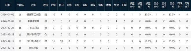 本賽季10場比賽打完,陳培東僅僅獲得了6次出場機會,且全部為替補出場,場均出場時間更是只有可憐的7.7分鐘。這樣的時長,不足他職業生涯以來任何一個賽季的三分之一。在極為有限的時間里,陳培東的各項數據也自然而然地大幅下滑,場均2.8分0.3籃板0.5助攻,完全找不到曾經球隊主力后衛的影子。