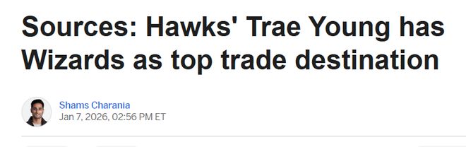 北京時間1月8日,據名記Shams報道,華盛頓奇才隊是特雷-楊心儀下家名單中的首選球隊,老鷹與奇才的交易談判已取得一定進展。