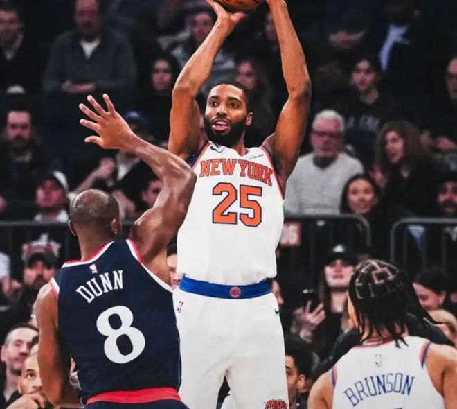 尼克斯隊這邊,布倫森12中9,三分5中4高效砍下26分3籃板7助攻;阿奴諾比10中8轟下20分3籃板;唐斯18中6得到20分11籃板7助攻。