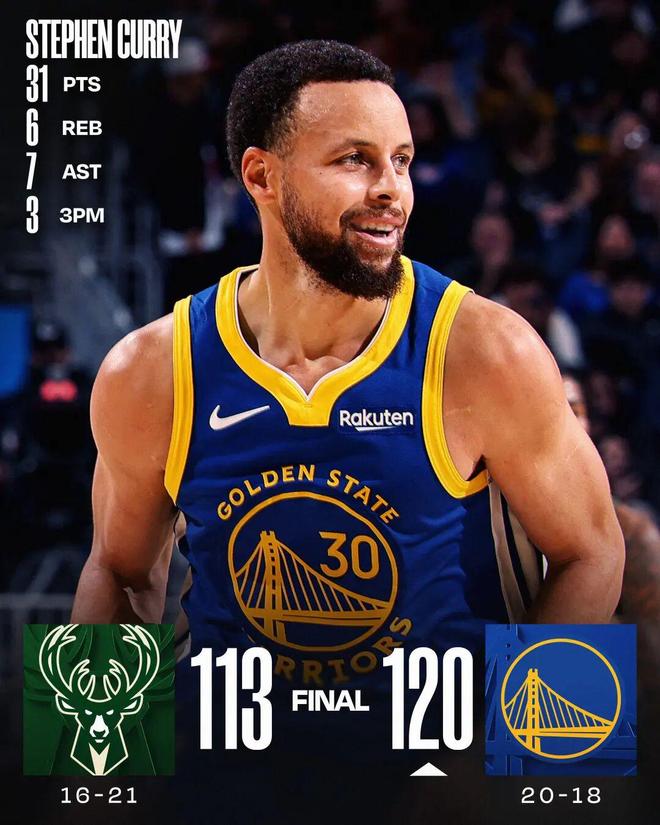 庫里31分字母34+10 勇士勝雄鹿