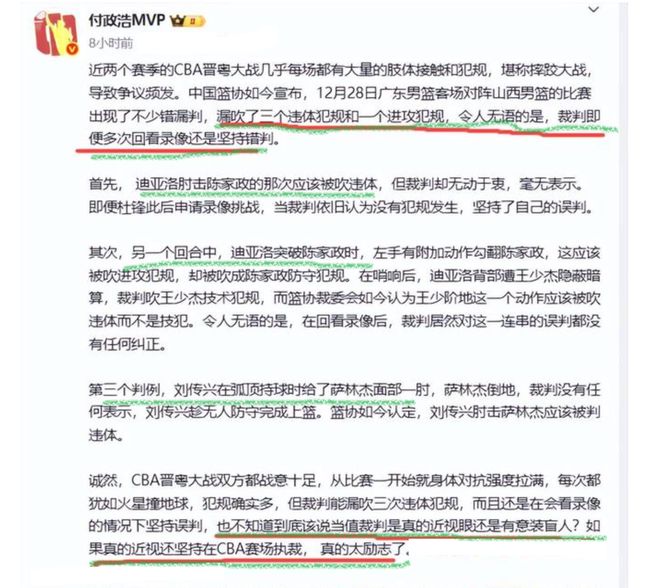 隨著籃協的裁判報告出爐,付政浩也是感到十分無語,他表示一場比賽,三次違體犯規和一個進攻犯規,裁判在看了錄像回放之后,依然出現錯判,真的是很無語。