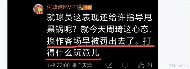 除了攻守不給力,還搞亂全隊情緒,與陶漢林較勁,與珀賽爾對噴,罵罵咧咧,雙方都領了技術犯規,遭隔扣太尷尬了。媒體人付政浩毫不留情的批評了他,“就球員這表現還給許指導甩黑鍋呢?就今天周琦這心態,換作客場早被罰出去了。打得什么玩意兒。”