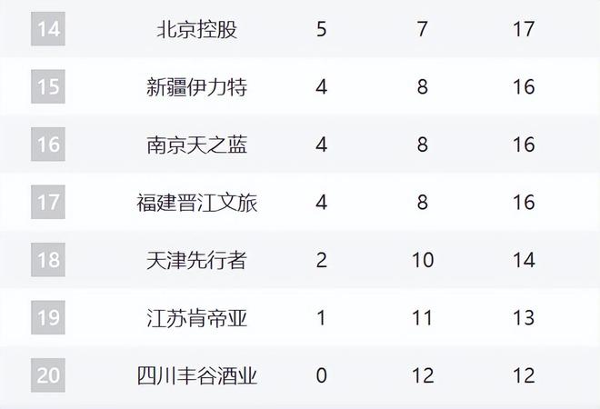 北京和青島排在第四和第五。北京最近5場輸了3場,他們需要盡快總結(jié)了。青島則是兩連敗,這輪慘敗給了上海。