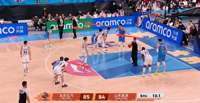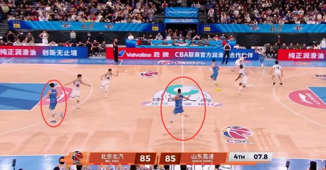 來看看北京的最后一攻是怎么發的?謝智杰罰進后,周琦快發底線球,第一時間找了陳盈駿,翟曉川、曾凡博也第一時間快步飛奔到前場準備接應,周琦開出球后也迅速跟進,只有杰曼還留在原地等接球,其他人都飛奔到了前場,杰曼還在后場伸手要球干著急,顯然杰曼和其他4名隊員完全不在一個頻道上。