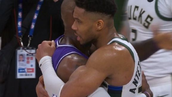 不過希臘怪獸不會嘲笑下山的神,賽后稱贊詹姆斯是所有運動員的榜樣,乃自己最敬仰的球員之一。