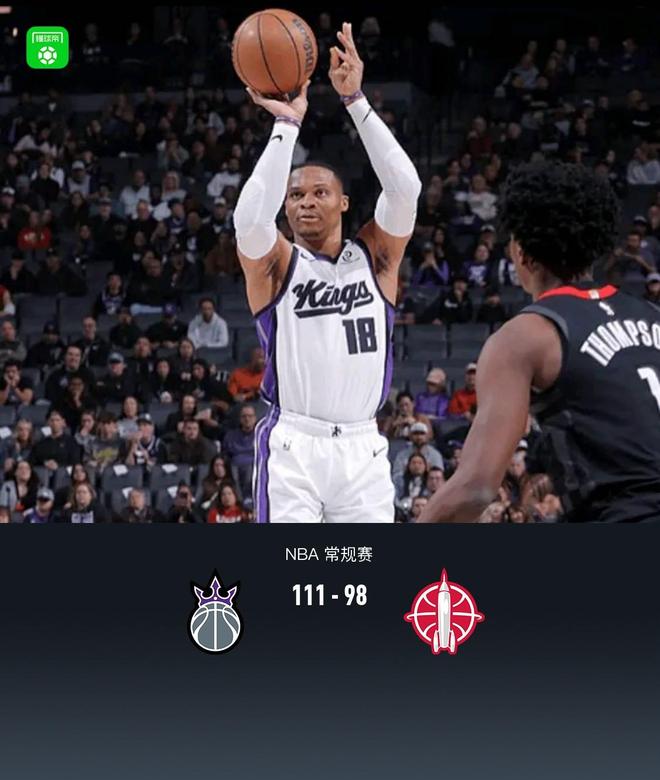 第四節國王威斯布魯克拿下8分,火箭杜蘭特拿下8分,最終國王111-98戰勝火箭