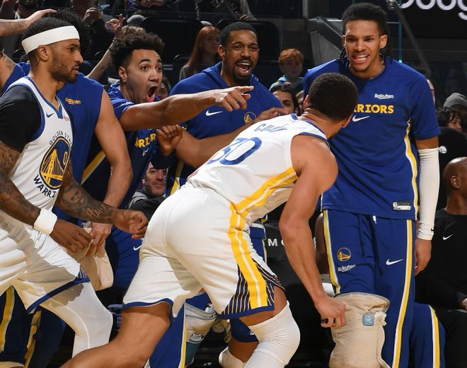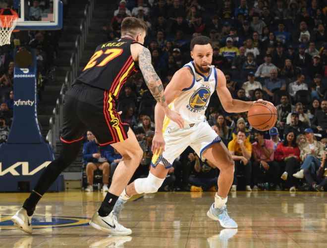 中段奧孔武的三分球吹響老鷹反撲號角,此后克雷伊奇和亞歷山大沃克內突外投,巴特勒連續強攻止血。后半段巴特勒繼續點名邁克勒姆,杰倫約翰遜單打回應。雙方僵持幾分鐘后,亞歷山大沃克節末突然下三分雨,半場結束時,老鷹59-53勇士。進入下半場,庫里造三分犯規,老鷹的丹尼爾斯又連續得分,當老鷹拉開12分分差時,庫里帶隊打出一波10-0打停對手。雙方又僵持幾分鐘,后半段肯納德連中三記三分,邁克勒姆和亞歷山大沃克多點開花,巴特勒三分止血但杯水車薪,肯納德彈無虛發!