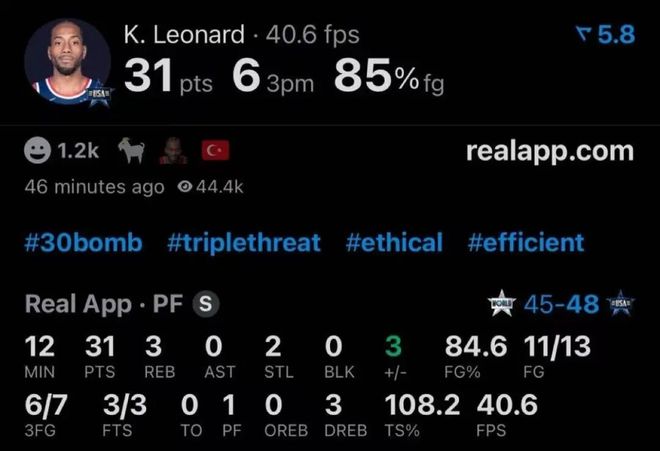 他獨得31分,而且效率超高,統治力爆表