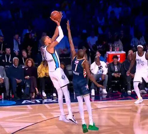 當杜蘭特跳起來都遮不住文班的出手