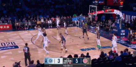 接球晃開防守,直奔籃筐爆扣!