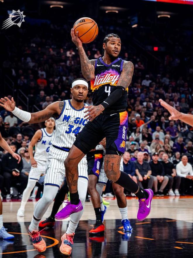 北京時(shí)間2月22日,NBA常規(guī)賽太陽主場對陣魔術(shù),狄龍禁賽一場后復(fù)出,但僅出場7分14秒左手受傷退賽。太陽在最多落后12分情況下,下半場逐步反撲反超11分,魔術(shù)持續(xù)反撲追平比分拖進(jìn)加時(shí)賽。雙方鏖戰(zhàn)兩個(gè)加時(shí)賽,格林壓哨三分絕殺,最終太陽113-110雙加時(shí)險(xiǎn)勝魔術(shù)結(jié)束2連敗。