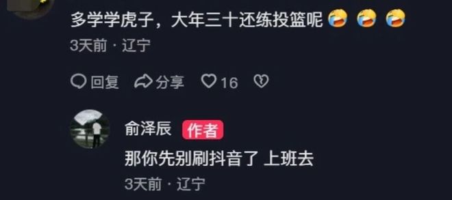 遼寧男籃本賽季的表現比較糟糕,主要是國內球員出現了斷檔的情況,外援選擇方面也不給力。在春節假期期間,不少球員都選擇了休息和放松,不過也有球員沒有松懈,而是在繼續提升自己。比如李虎翼,他甚至在除夕那天還在自己加練。有球迷看到俞澤辰23日發布的自己的騎馬視頻后,在下面留言,表示讓他學學虎子,大年三十還在練投籃呢。對此俞澤辰直接懟了回去,表示該球迷先別刷視頻了,該上班去。兩人的這一問一答引發了球迷熱議。