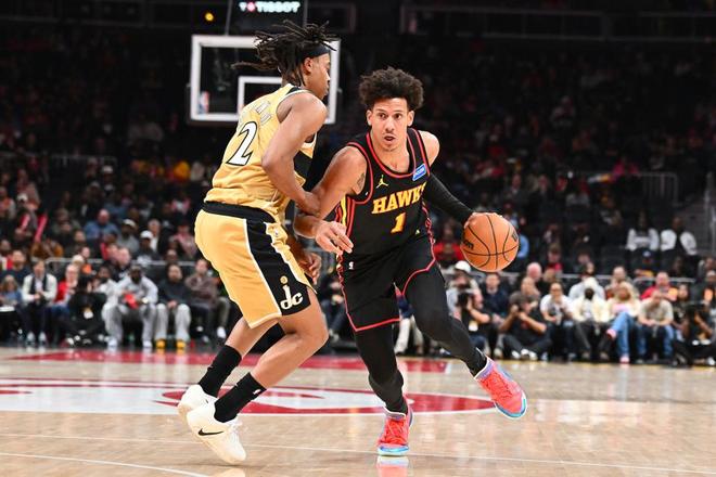 老鷹上一場主場115-104戰(zhàn)勝籃網(wǎng),奇才上一場主場112-129輸給黃蜂,本賽季前兩次交鋒雙方各取一勝。本場奇才缺少濃眉哥、特雷-楊、拉塞爾與薩爾等,老鷹迎來新援庫明加加盟首秀。老鷹在前半節(jié)僅12-10領(lǐng)先,但隨后借助攻防碾壓逐步擴大35-17領(lǐng)先18分優(yōu)勢,尚帕尼壓哨三分命中,首節(jié)結(jié)束老鷹35-20領(lǐng)先奇才。杰倫僅出戰(zhàn)6分鐘因傷缺席,但首節(jié)老鷹已經(jīng)有5位球員至少得到5分,庫明加4中3得到7+2+4+1,奇才全隊僅21中8。