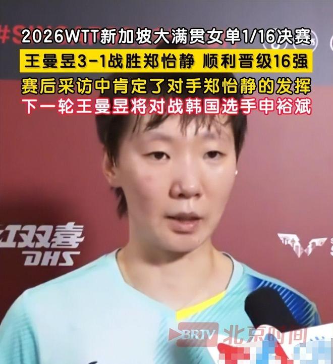 另一端是國乒名將王曼昱亮相WTT新加坡大滿貫女單1/8決賽,迎戰韓國新銳申裕斌,爭奪八強入場券。