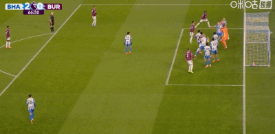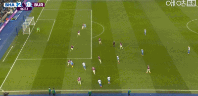 第46分鐘,阿亞里右路斜射入網,布萊頓2-0伯恩利