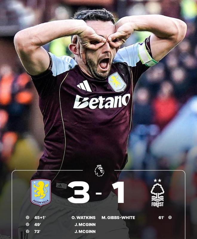 但第73分鐘,門將維克托出擊失誤,麥金再下一城,完成梅開二度,徹底殺死比賽。最終,阿斯頓維拉3-1拿下森林隊,全取3分。