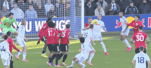 第30分鐘,曼聯三名后衛配合,盧克肖開出角球,利馬回做,達洛特原地擺腿的射門,放了高射炮。