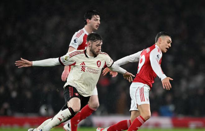 比賽進入30分鐘之后,場面基本被阿森納控制,射門次數也是增多。第36分鐘,特羅薩德禁區內晃開角度一腳打門稍稍偏出。第44分鐘,阿森納傳中被解圍出去,賴斯弧頂一腳射門被門將阿利松沒收。