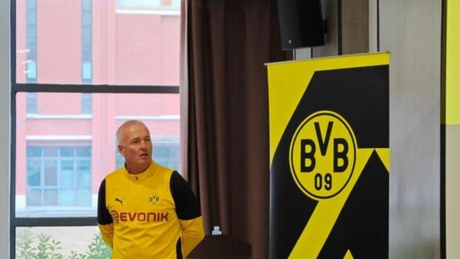 日前,多特蒙德足球俱樂(lè)部傳奇球員、歐冠冠軍成員、現(xiàn)任俱樂(lè)部亞太區(qū)技術(shù)總監(jiān)的保羅·蘭伯特受邀前往中國(guó)武漢,與多特蒙德中國(guó)區(qū)域俱樂(lè)部合作伙伴——武漢聯(lián)鎮(zhèn)足球俱樂(lè)部開(kāi)展系列交流,并與武漢聯(lián)鎮(zhèn)青訓(xùn)學(xué)院、U7和U13的小隊(duì)員們進(jìn)行了足球文化的互動(dòng)。同時(shí)這位多特蒙德中場(chǎng)核心,還手持俱樂(lè)部11號(hào)戰(zhàn)袍亮相。