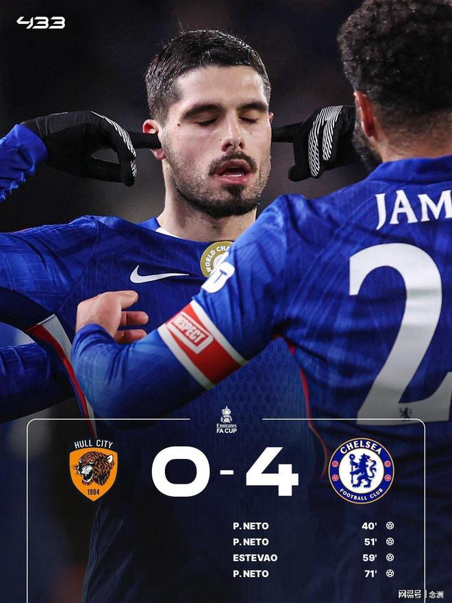 足總杯第4輪,切爾西客場4-0大勝赫爾城,晉級16強。內(nèi)托角球直接破門+上演帽子戲法,德拉普助攻戴帽,埃斯特旺破門。