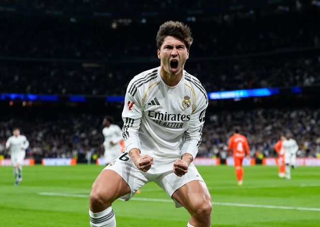 隨著主裁判一聲哨響,兩支球隊就在場上拉開架勢對攻,第5分鐘登陸伯納烏后,就一直郁郁不得志的利物浦太子阿諾德,右路傳中助攻貢薩洛加西亞破門得分,幫助皇馬取得了1-0的夢幻開局,不過第21分鐘赫伊森禁區(qū)內犯規(guī),送給了皇家社會一粒點球,奧亞薩瓦爾主罰命中,將比分追至1平。