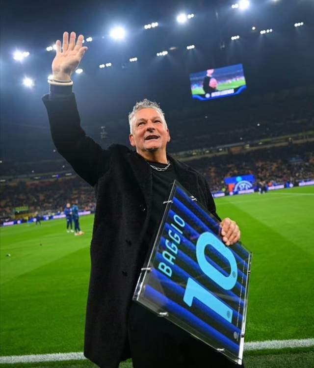 本場比賽中,曾在國際米蘭效力的巴喬亮相。1967年出生的巴喬也是略帶滄桑。