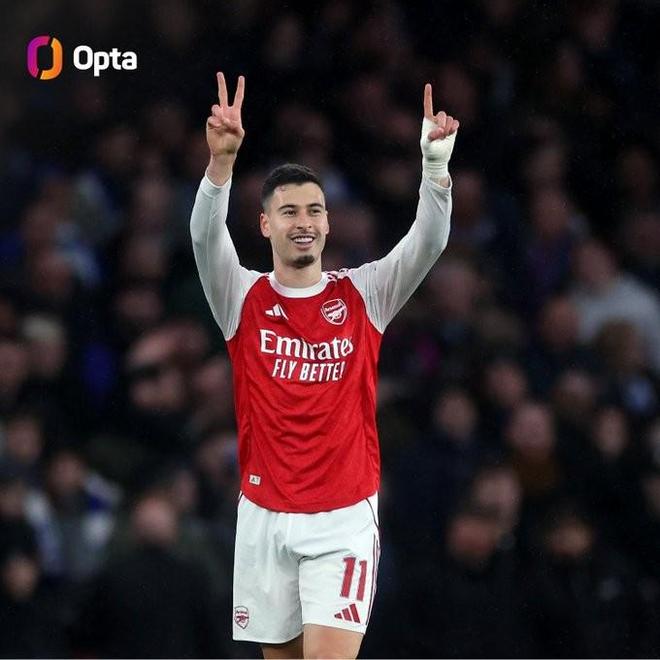 據OPTA數據統計,馬丁內利本賽季在各項杯賽及歐洲賽事中已攻入10球,成為自1994-95賽季以來首位在單賽季相關賽事中達到這一數據的阿森納球員。此前完成這一成就的是伊恩-賴特,他在1994-95賽季打入12球。