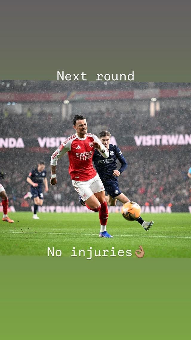 阿森納在英格蘭足總杯第四輪主場4-0大勝維岡競技成功晉級下一輪,但首發出場的本-懷特在比賽的尾聲階段疑似因傷被換下引發了不少擔憂,對此這名后衛表示無需杞人憂天。