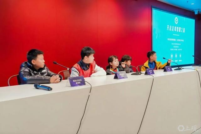 來到新聞發布廳,孩子們系統學習了球場常識、比賽規則、賽場禮儀,以及新聞發布會的完整流程與細節。隨后,孩子們化身 “球隊發言人”,模擬賽前聯席會與新聞發布會環節,勇敢接受 “采訪”,大方表達自己對足球的熱愛、對球星的崇拜,以及對上海海港隊的真誠祝福。