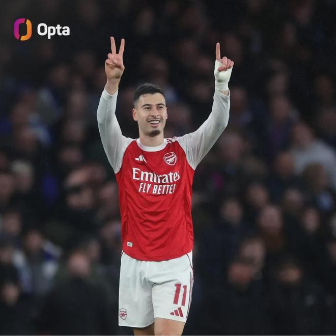 Opta統計,馬丁內利本場破門后成為了94-95賽季的賴特之后,首位單賽季在國內杯賽以及歐戰比賽中進球10+的槍手。