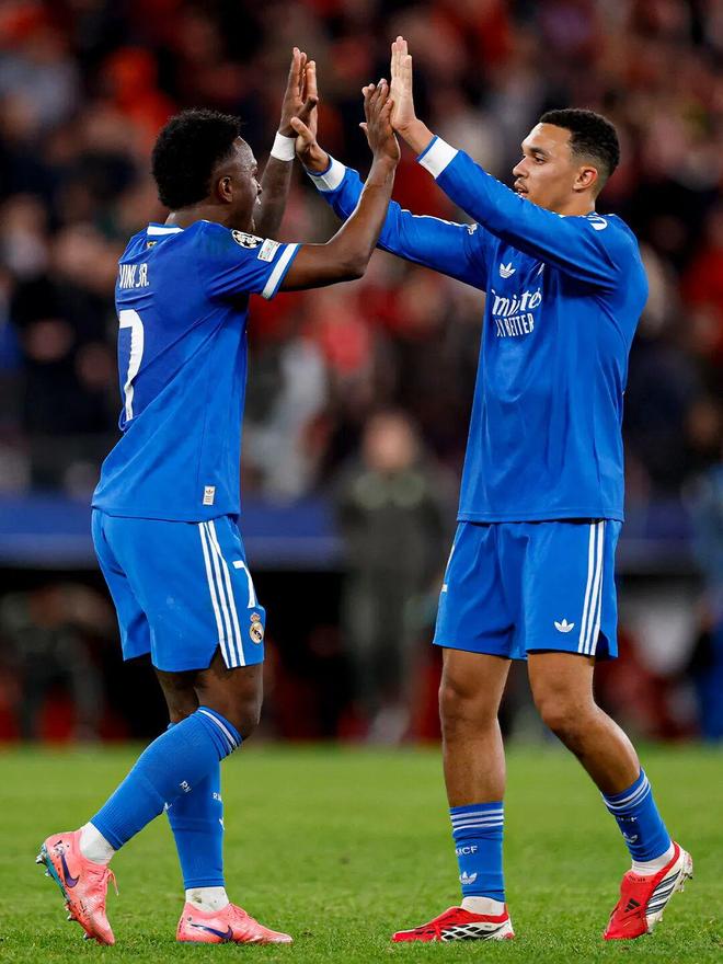 40' 阿諾德右路掃傳,姆巴佩中路包抄未能碰到。