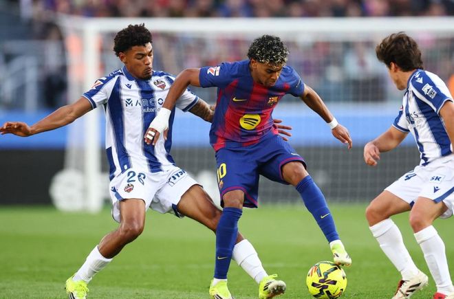 第32分鐘,巴薩再次進(jìn)球!坎塞洛在左側(cè)起球傳中,德容后插上,在門前凌空墊射,輕松把球送進(jìn)球門。萊萬特陷入了絕境!4分鐘后,通德起腳遠(yuǎn)射,皮球稍稍偏出右側(cè)立柱。半場補時階段,赫拉德-馬丁犯規(guī),被出示黃牌。半場結(jié)束,巴薩2-0領(lǐng)先萊萬特。