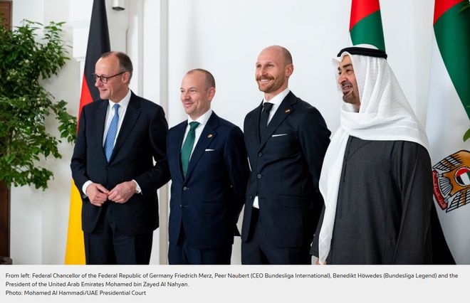 2026年2月,德甲聯(lián)賽與阿聯(lián)酋職業(yè)聯(lián)賽在兩國國家元首的見證下正式簽署諒解備忘錄,官宣阿布扎比德甲青訓(xùn)學(xué)院落地,同步揭牌德甲國際阿布扎比區(qū)域辦公室,還上線了首個阿拉伯語社交媒體賬號完成本土化球迷生態(tài)布局。這場合作并非簡單的“青訓(xùn)輸出”,而是德甲將其享譽(yù)全球的青訓(xùn)理念、職業(yè)化運(yùn)營體系與阿聯(lián)酋本土足球生態(tài)深度融合的戰(zhàn)略布局,涵蓋青年球員培養(yǎng)、教練員培訓(xùn)、賽事轉(zhuǎn)播運(yùn)營、球迷互動、商業(yè)營銷五大核心領(lǐng)域,更依托“德甲夢想”計(jì)劃為阿聯(lián)酋苗子打通赴德交流的官方通道。德甲國際首席執(zhí)行官佩爾·諾伯特直言,這是德甲對中東北非地區(qū)“各層級足球發(fā)展的長期投入”,而非一場象征性的合作。