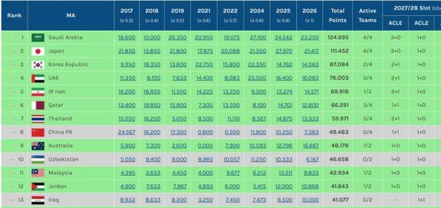 本賽季亞冠,中超4隊總共拿到亞足聯積分7.383分,東亞區排到第9了,只比柬埔寨高一點,連印尼、馬來西亞、越南都比我們拿得多,泰國更是我們將近2倍,中超趕緊開放外援吧!