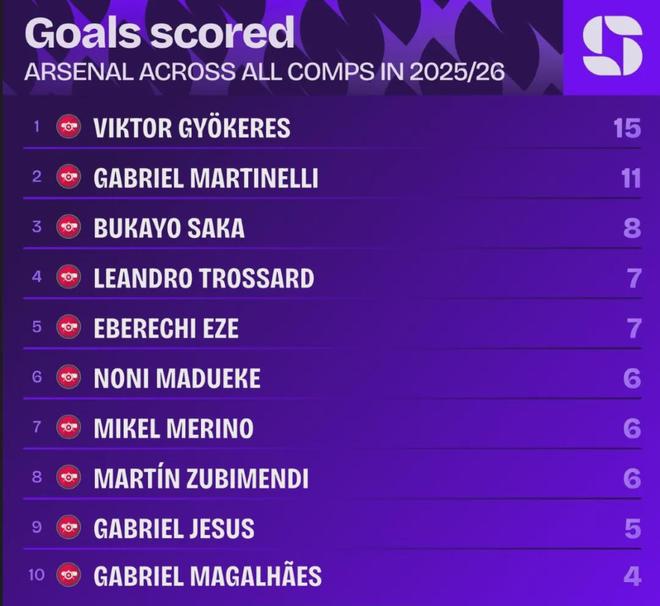 阿森納終于有一個能拿得出手的中鋒了,隊內(nèi)射手榜第一位的終于不是什么千奇百怪的人了!
