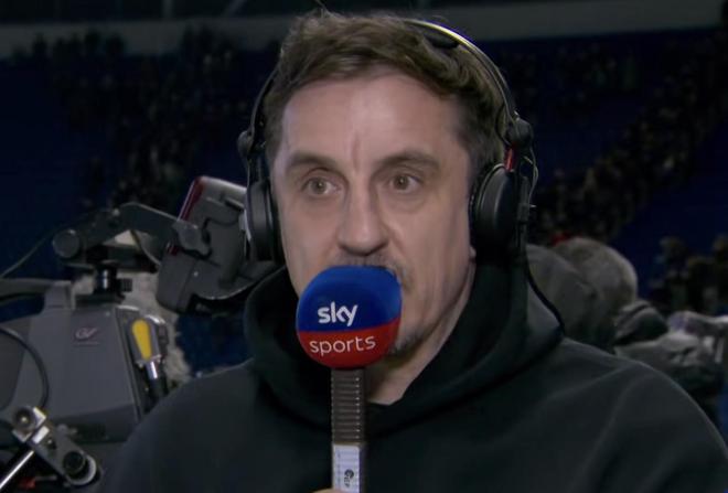北京時間2月24日,英超第27輪,埃弗頓0-1曼聯。在天空體育的播客節目中,內維爾對本場比賽進行了分析。