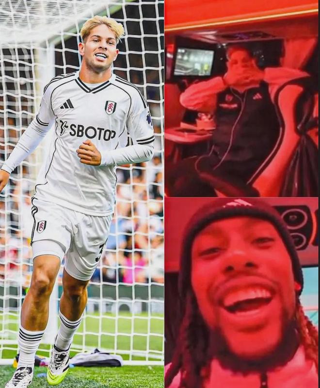 S羅和伊沃比在富勒姆的大巴上觀看了北倫敦德比,在阿森納2-1再次領先后,兩人開心慶祝,S羅還做出了哲凱賴什的慶祝動作。
